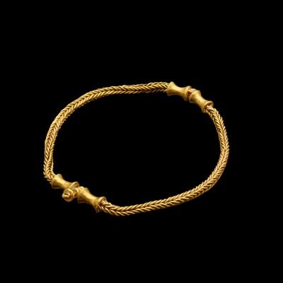 formed of twisted gold wire with dual collared clasps