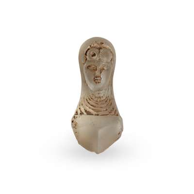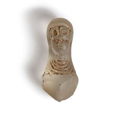 carved and polished rock crystal, depicting a janiform lady
