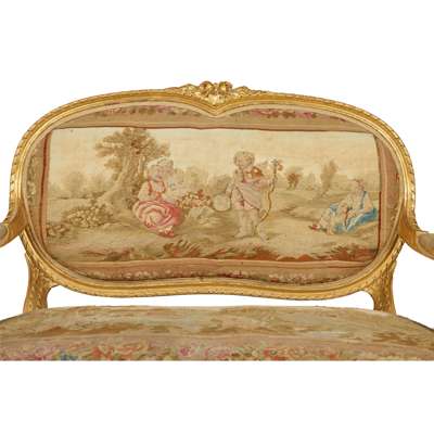FRENCH THREE PIECE GILTWOOD AND AUBUSSON SUITE