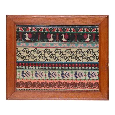 coloured wools within original oak frame