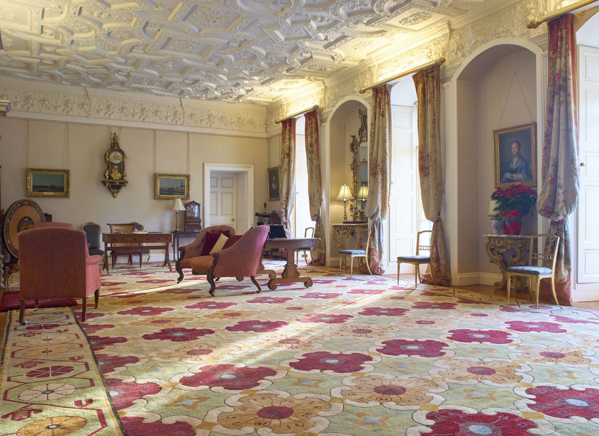 Having been produced in the 1850s, there was dramatic moment early in the carpet’s existence, when it was temporarily ‘lost’ during the Indian Rebellion of 1857-58 and Lord and Lady Ruthven travelled to India in the aftermath to track it down. It was eventually rediscovered and continued its journey towards its final destination at Winton Castle, where it has graced the Drawing Room floor for around 165 years.